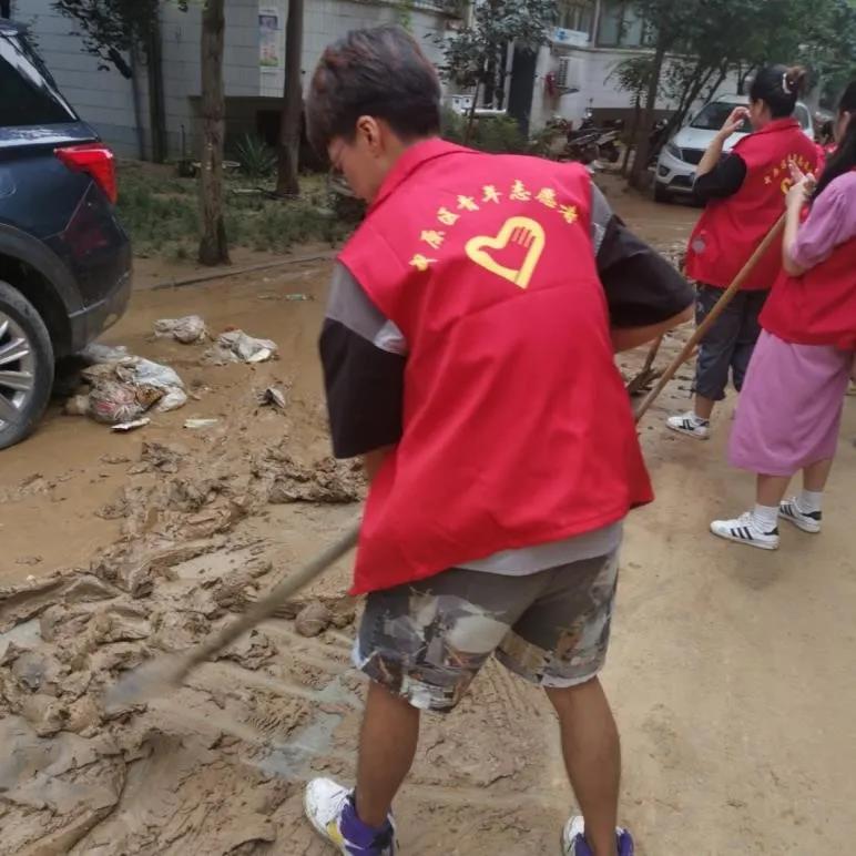 7月22日,教师教育学院19级音乐学1班黄舒畅穿上雨靴、拿着铁锹等工具与社区工作人员一起开展灾后清淤工作,全力实现道路畅通,帮助辖区群众尽快恢复生产生活秩序。