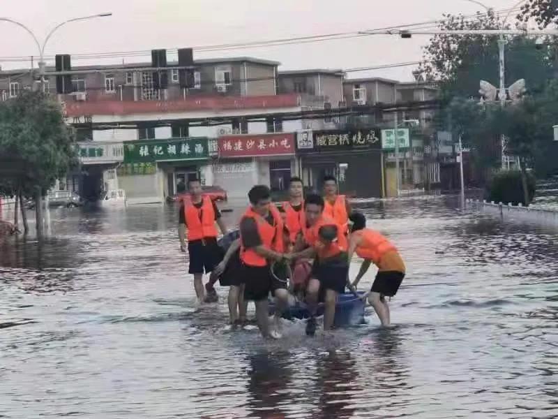 邢家豪同学回忆当时情景时说:“西马坊村距离我们只有五公里,近在咫尺,但前面的道路却充满积水,附近几个村庄淹没在一片汪洋之下,在这里我们遇到郑州蓝天救援队,亳州红十字会等多支救援队,我们没有专业的冲锋舟、皮划艇等设备到达西马坊村救援第一线,而且断水断电,看着前面黑压压的积水,周围浸泡在洪水中的村庄,给人近乎绝望的压迫感、无力感。在当地应急管理指挥部的统筹安排下,我和姚伟涛同学穿着救生衣,站在近处齐腿深的积水中,一波又一波地接应着专业救援队从被洪水淹没的村庄中救出的村民们。