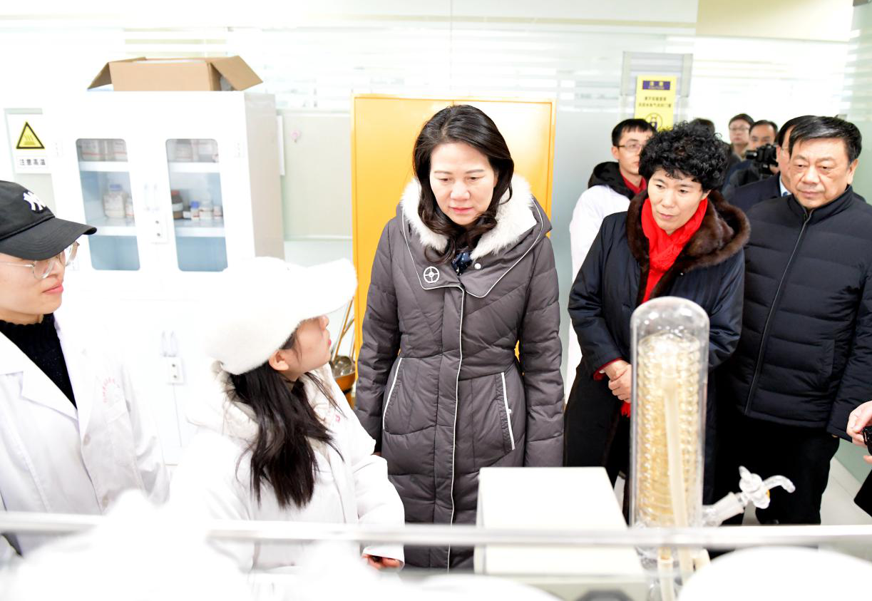 河南省张仲景方药与免疫调节实验室2006年成立,2008年被批准为南阳市重点实验室,2017年成为省级重点实验室,同时也是我校第一个省级重点实验室。霍金花来到这里,先后参观了艾叶研究实验室、方药制剂实验室、离心机室、流式细胞仪室、方药分子实验室、综合性科研实验室等地。她说,中医学是中华民族的瑰宝,也是中国文化的重要组成部分,作为医圣张仲景故里,大家要坚持不懈、加强钻研、破解难题,擦亮仲景名片,推动中医药事业发展。