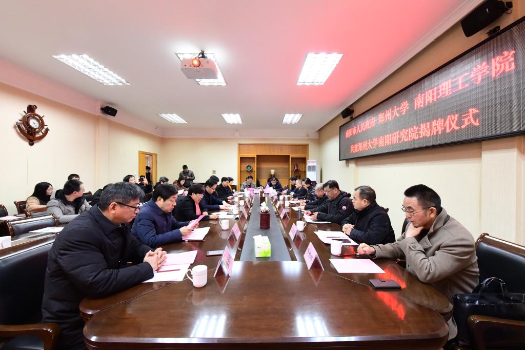 屈凌波说,郑州大学的发展得到了全省人民的大力支持,包括南阳市千万人民的大力支持。与南阳理工学院共建郑州大学南阳研究院,正是郑州大学以实际行动回报南阳市千万人民对郑州大学支持的重要举措。研究院的建设将更加紧密郑州大学与南阳市在教育、产业、科技、医疗等方面的合作,充分发挥郑州大学在人才智力优势,把南阳市的经济发展作为郑州大学奉献社会、服务社会、服务地方经济的主战场,建立一个服务南阳市经济社会的发展有组织、有计划、更高层次、更高质量的平台。同时,仪式也揭开了郑州大学和南阳理工学院合作崭新篇章。郑州大学将全力以赴建设好南阳研究院,切切实实把南阳研究院建立成一种服务地方经济社会发展的桥头堡,建设成为一个促进地方经济社会发展的重要研发基地,扎扎实实地开展工作,紧密围绕南阳市经济社会发展的需求,抓好、抓实科研项目和社会服务项目建设,通过一个一个项目的设立和项目的开展取得一批研究成果,培养一批高层次的人才来做好郑州大学对社会的服务,表达郑州大学对南阳人民的厚爱和对南阳人民的感谢,为南阳市经济社会高质量发展作出郑州大学应有的贡献。屈凌波还以“一流大学建设进程中科研工作面临的形势和挑战”为题,围绕科技创新如何支撑“双一流”建设、国家项目政策的解读、郑州大学科研工作现状分析与面临的困难和挑战等方面进行了分享。