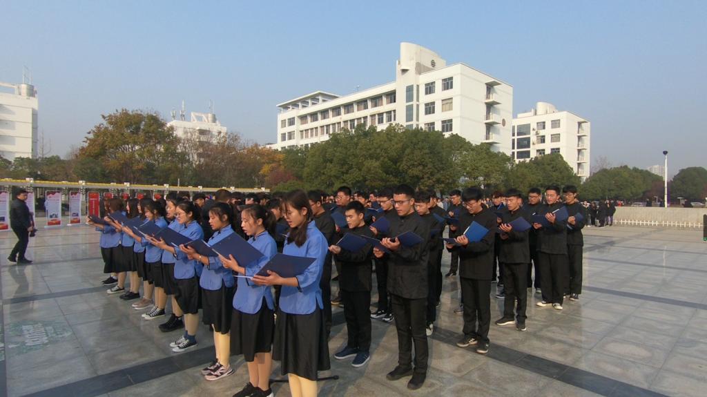 学生代表软件学院李昊远同学发言:我们应珍惜先辈们用鲜血换来的幸福生活,不忘历史,开创未来。他呼吁青年大学生要树立与新时代主题同心同向的理想信念,勇于担当时代赋予的历史责任。以青春之我、奋斗之我,为实现中华民族伟大复兴贡献自己的力量。百余名身着黑色中山装的软件学院学生齐声诵读公祭文,响亮的声音,激发广大青年学子树报国之志,担爱国兴邦之责。