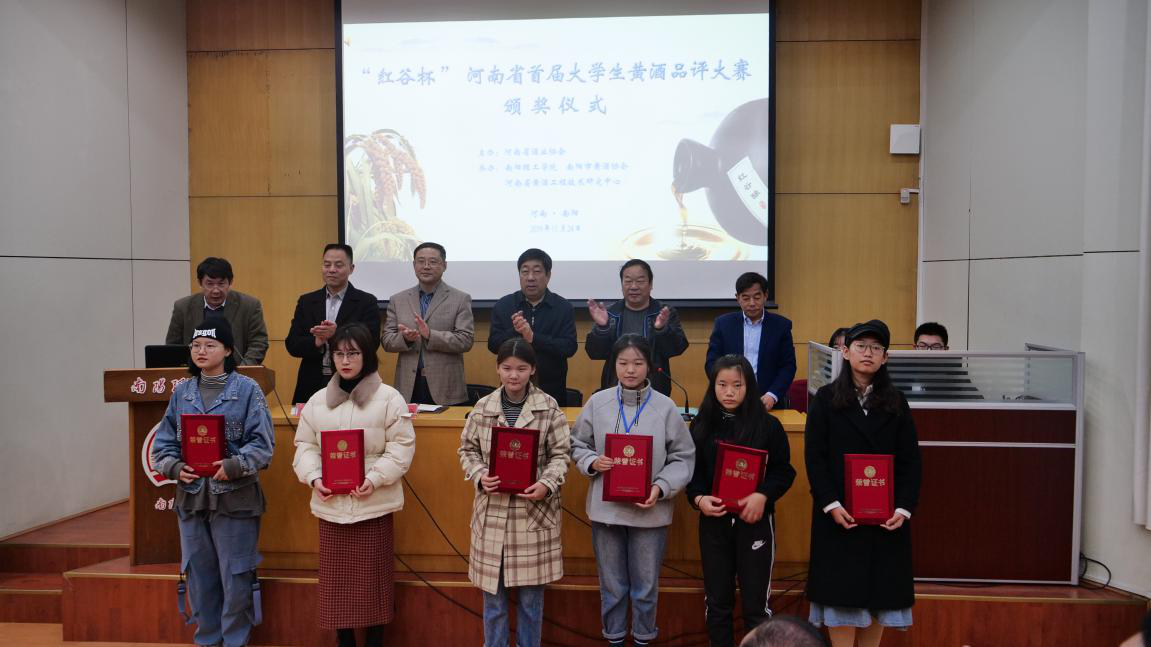 本网讯(学生通讯员/李卓 尤江杰)11月22至24日,由河南省酒业协会主办,南阳理工学院、南阳市黄酒协会、河南省黄酒工程技术研究中心承办的“红谷杯”河南省首届大学生黄酒品评大赛在我校成功举行,来自省内外7所高校的57名学生参加了比赛。河南省酒业协会领导、南阳市黄酒协会领导,校党委委员、副校长肖泽昌等出席颁奖仪式。