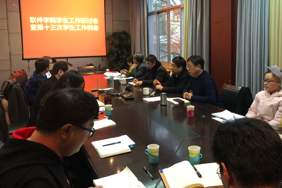 本网讯(特约记者/陈旭)11月26日下午,软件学院在15号楼二楼会议室召开学生工作研讨会。校党委委员、副校长肖泽昌出席,学生处、保卫处、心理健康教育中心负责同志和相关工作人员、软件学院党委和学生工作负责同志、辅导员参加会议。会议由软件学院党委书记牛军科主持。
