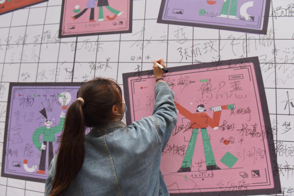 各学院推陈出新,设立创意满满的迎新展板,十分引人注目,新生们纷纷在迎新展板前签字合影留念。