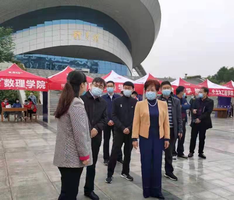 本网讯(学生记者/田盈盈 陈薇薇)10月9日上午,校党委书记刘荣英,校长安士伟,校党委副书记、工会主席张伟,纪委书记、监察专员许建辉带领党政办、学生处、保卫处、校医院负责人深入迎新现场指导工作,并与现场工作人员和志愿者、2021级新生及家长亲切交谈。