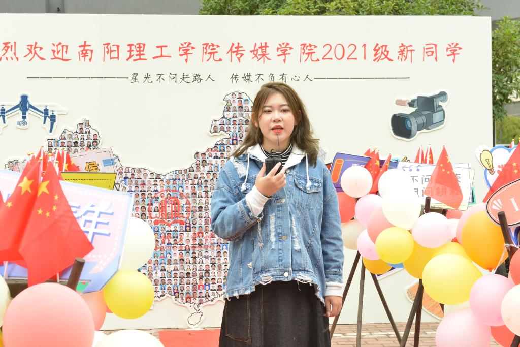 数字媒体与艺术设计学院的迎新展板则用每个新生的名字组成四个爱心,四个爱心同时也代表该学院的四个专业,并为新生赠送植物小盆栽,寓意希望和梦想。同时,学长学姐也为迎接新生进行了热闹非凡的各色表演。