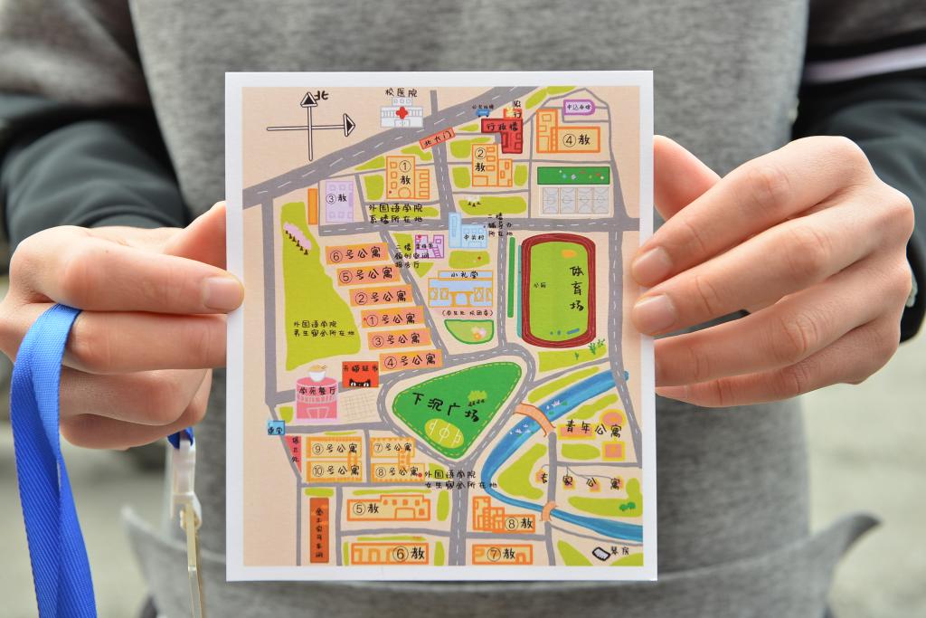 外国语学院为新生们制作校园小地图,精美又实用,帮助新生们尽快熟悉校园的各个地方,也更好地融入校园生活。