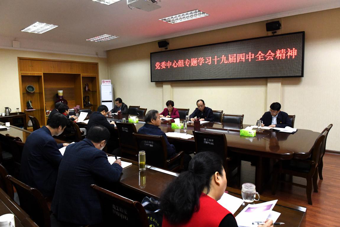 本网讯(记者/李春燕)11月6日上午,校党委中心组在学校第一会议室召开专题学习会议,学习十九届四中全会精神,校党委书记邢勇主持会议。