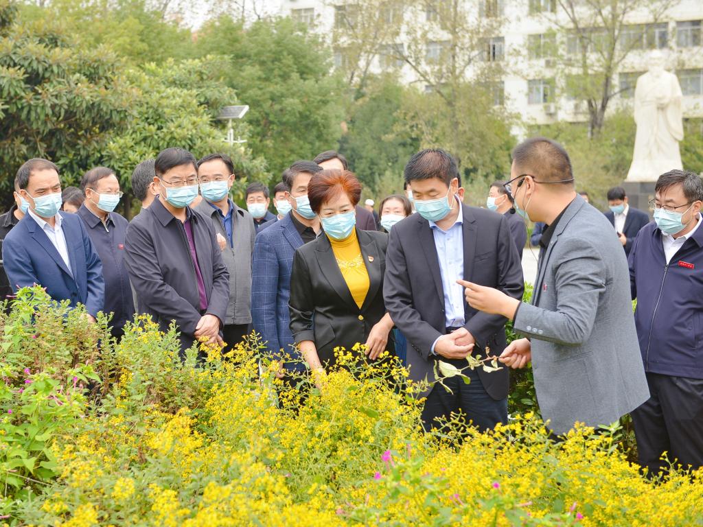 宋争辉一行先后参观张仲景药用植物园、张仲景方药与免疫调节重点实验室、张仲景医药史馆等地,深入了解南阳八大宛药的功效和生产情况,听取张仲景国医国药学院专业设置、师资力量、实验室及中医药基地建设、校企合作等情况汇报,详细询问张仲景国医大学筹备工作及我校新校区建设工作。