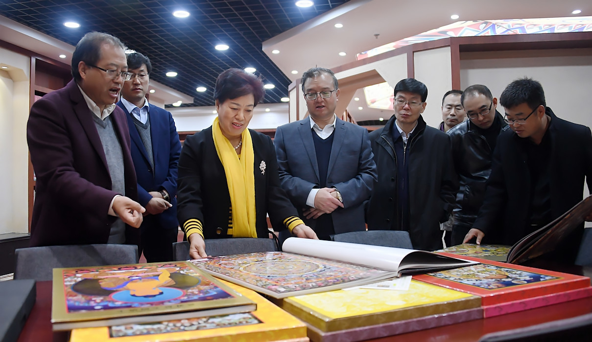 刘荣英一行在兰州文理学院校长郑伟强和相关部门负责同志陪同下,先后考察了该校国家级众创空间——“雁苑微林”众创空间、敦煌文献室、古籍文献室、文化创意展厅、全景式综合演播中心、数字媒体学院运动捕捉实验室、艺术实践教学展演、新闻传播学院教学实验中心和数字媒体学院教学实验中心等。