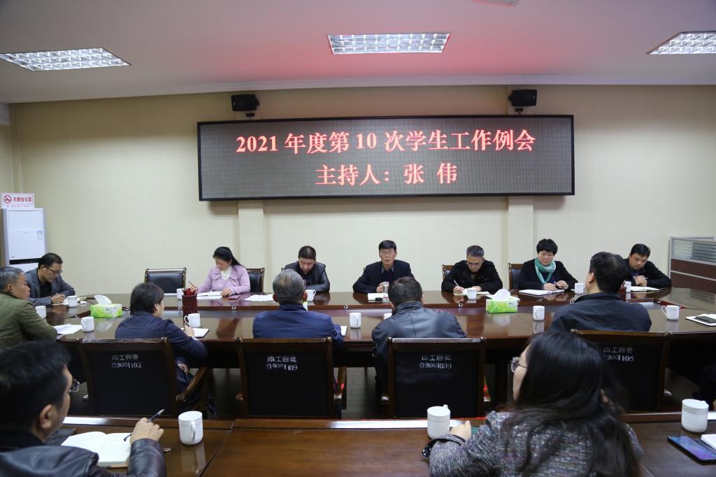 本网讯(特约记者/张启鑫)10月25日下午,校党委副书记、工会主席张伟主持召开我校2021年度第10次学生工作例会。学生处、团委、心理健康教育中心、保卫处、后勤服务中心、校医院等部门主要负责人、各教学院党委副书记参加会议。