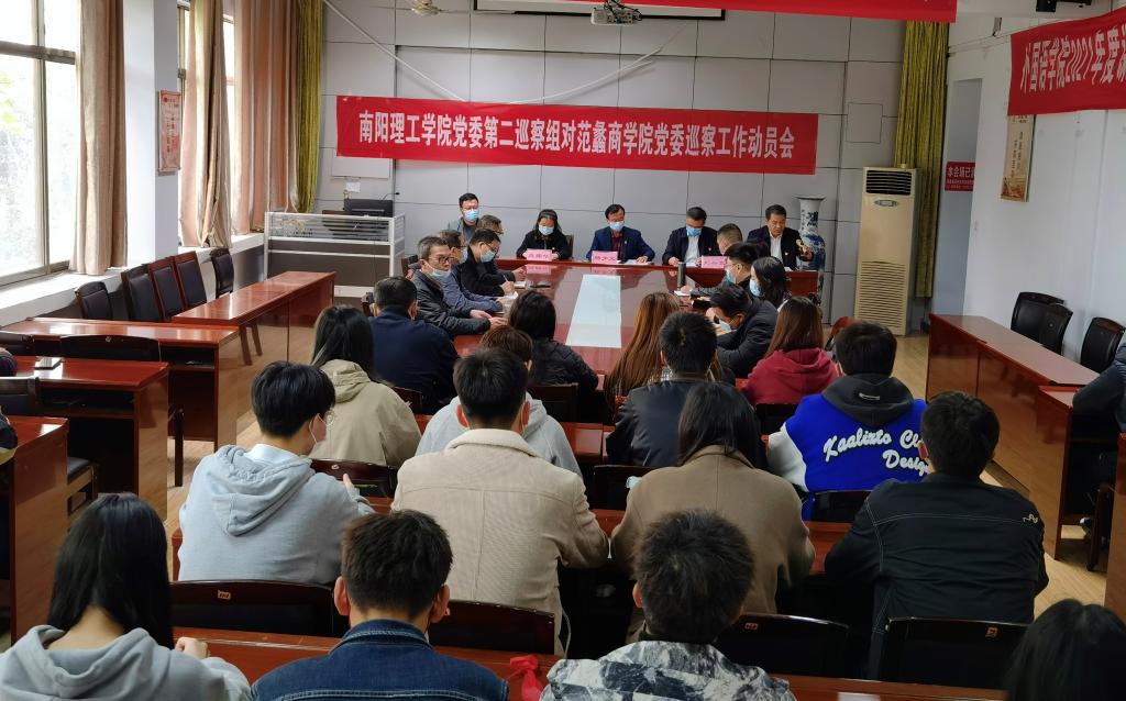 本网讯(特约记者/赵政 张清)10月25日,我校党委第二轮巡察组召开对范蠡商学院党委和马克思主义学院党总支巡视工作动员会。第二巡察组全体成员出席会议。范蠡商学院、马克思主义学院领导班子成员,副科级以上干部、师生代表参加会议。