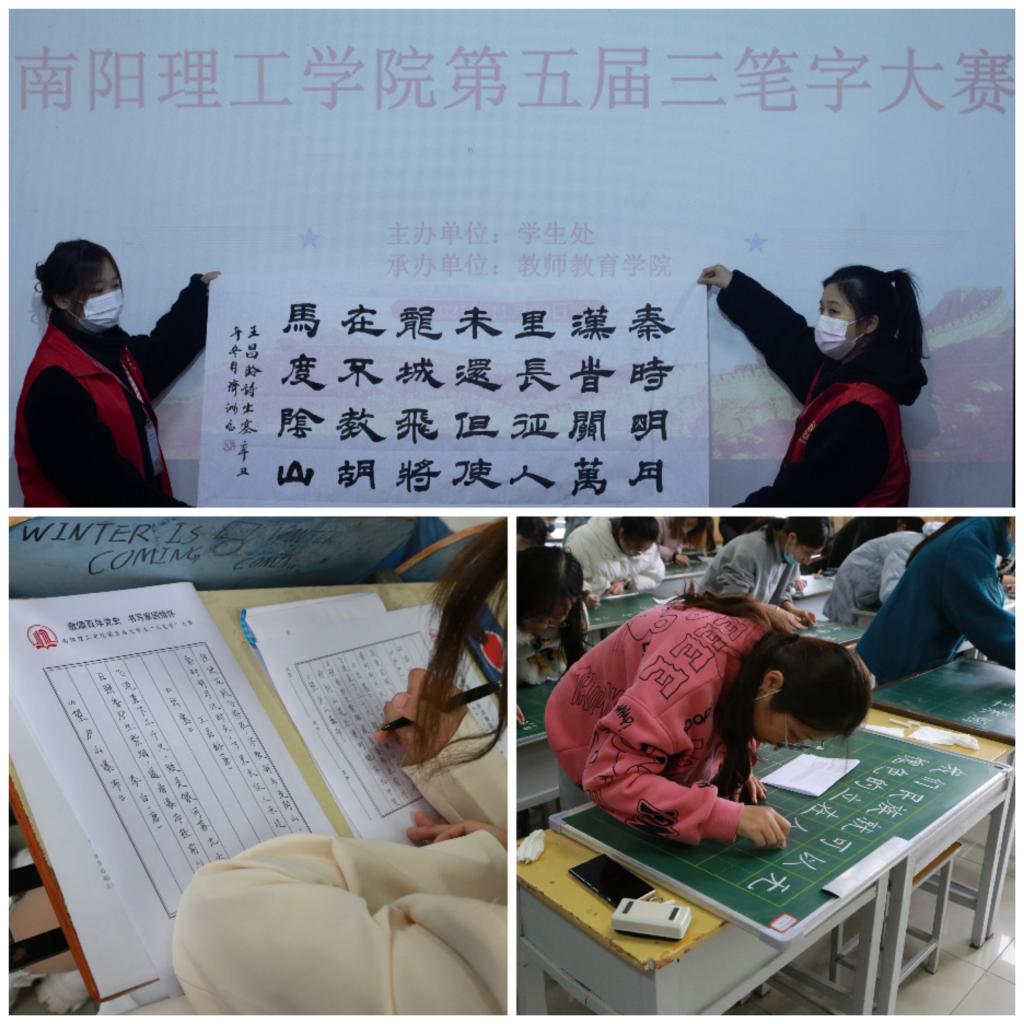 本网讯(特约记者/何雷雨 学生记者/李佳欣)11月20日,由学生处主办,教师教育学院承办的第五届大学生三笔字大赛如期举行。校党委副书记、工会主席张伟,校团委、教务处、学生处、教师教育学院负责人出席活动。来自13个学院700余名学生积极报名参赛,经过层层选拔,最终有210人成功晋级决赛。