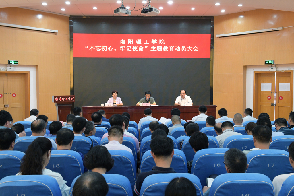本网讯(记者/王虎 特约记者/李冉 学生记者/王锦丽)9月11日下午,南阳理工学院在领创空间学术报告厅召开“不忘初心、牢记使命”主题教育动员大会,深入贯彻落实习近平总书记在“不忘初心、牢记使命”主题教育工作会议上的重要讲话精神,对全校主题教育活动进行全面动员和部署。省委第十一巡回指导组副组长、省林业局副巡视员李灵军出席会议并讲话,校党委书记邢勇作动员讲话。省委第十一巡回指导组成员王明玉、韩海军、雷浩然出席会议。全体校领导、全体中层正职、中层副职党员干部、全体辅导员、专职组织员、各党支部书记、学生党员代表参加会议。校长刘荣英主持会议。