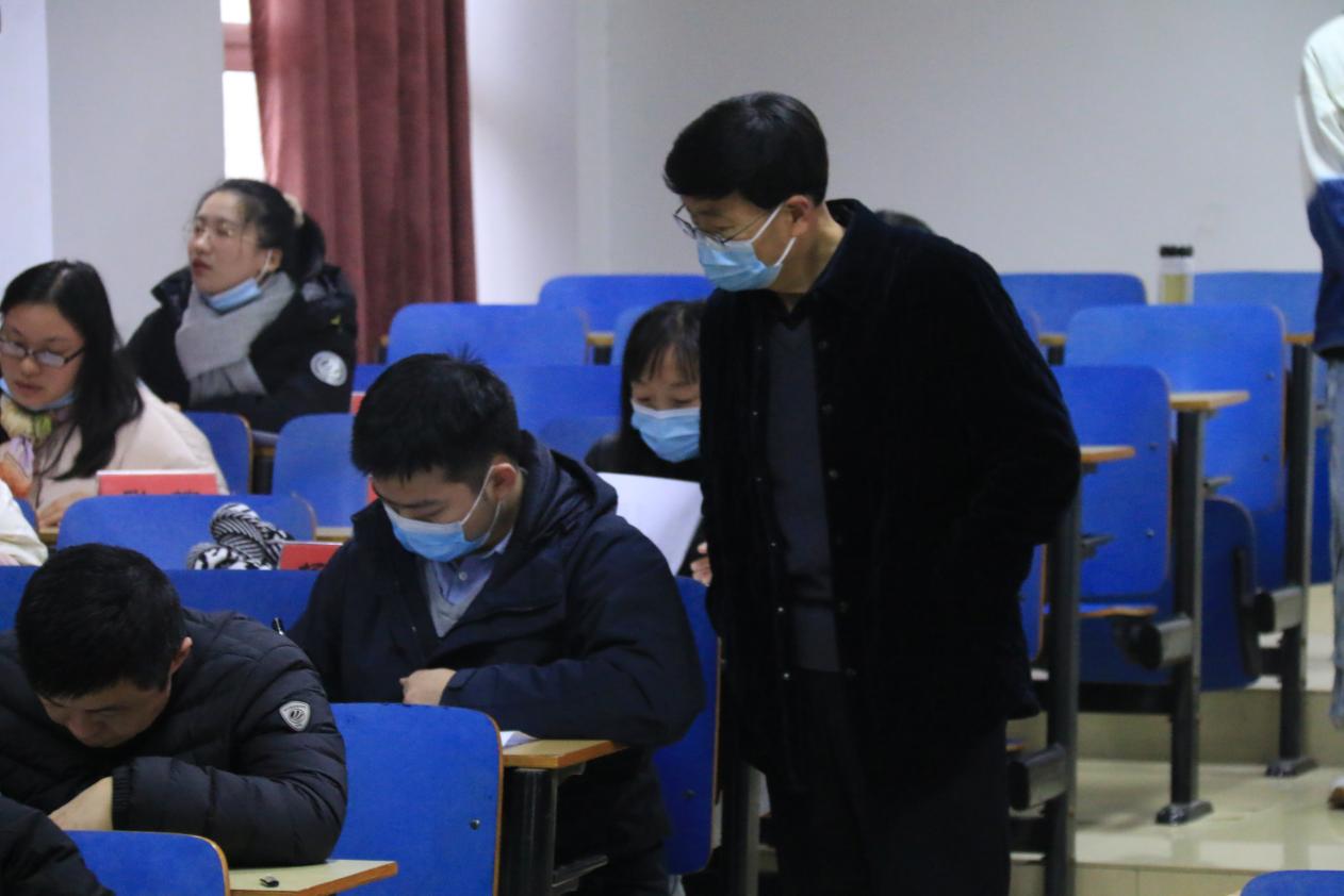 此次大赛以闭卷考试的形式进行,时长为两个小时,监考人员由学生担任。测试主要考察辅导员老师的理论素养和业务知识。考试过程中,辅导员们从容冷静、仔细审题、认真答题,各位辅导员对待大赛严谨认真的态度为同学们做出良好表率,体现了辅导员们优良的职业素养、扎实的理论功底和严格的纪律观念。