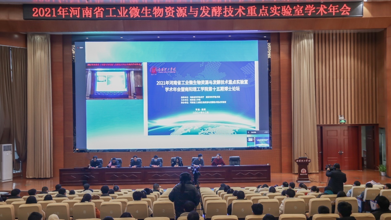 本网讯(学生通讯员/李冯石 王雅洁 杨慧颖 王娜)12月11日,2021年河南省工业微生物资源与发酵技术重点实验室学术年会暨南阳理工学院第十五期博士论坛在我校第三报告厅举办。副校长张爱红、南阳市科学技术局副局长王宇出席论坛,省内外多所高校专家学者、科研管理处负责人、生物与化学工程学院领导班子成员及我校师生代表参加会议。