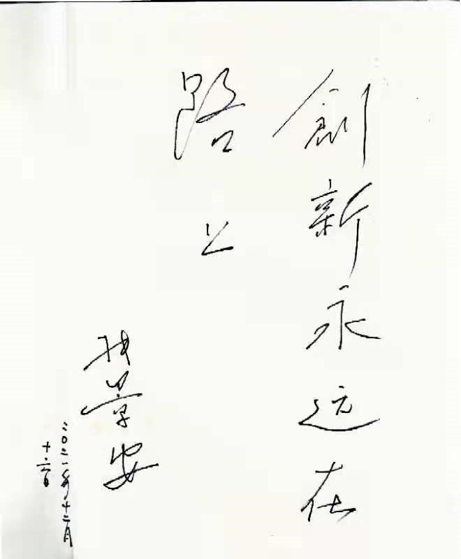 参观数字媒体与艺术设计学院艺术馆后,张景安为学院题词:创新永远在路上。(校对/鲁静薇 审核/肖邓华)