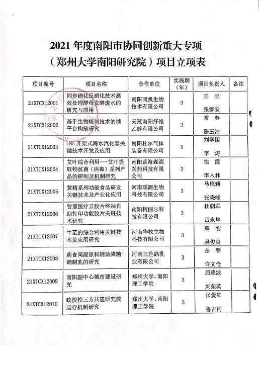 据了解,该项目委托南阳市人民政府、郑州大学、南阳理工学院共同设立的郑州大学南阳研究院面向南阳产业核心技术、共性关键技术和前瞻性技术遴选优质的项目,利用南阳市政府拨付的郑州大学南阳研究院专项建设经费,协同社会组织共同设立的协同创新重大专项。采取自筹项目资金、自主管理实施的方式设立科技专项,作为南阳市重大专项的组成部分纳入南阳市重大科技创新专项管理。