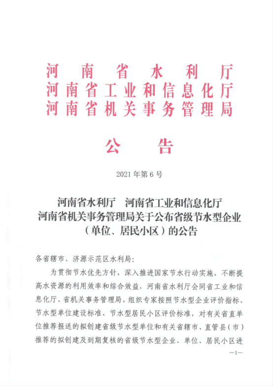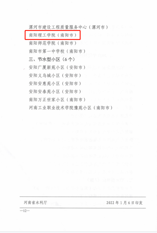 本网讯(特约记者/杜晓智)近日,河南省水利厅对省级节水型企业、单位进行考核,我校再次荣获河南省“节水型单位”。
