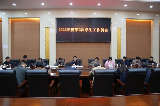 本网讯(特约记者/张启鑫)3月14日下午,我校召开2022年度第2次学生工作例会。学生处、团委、心理健康教育中心、保卫处、后勤服务中心、校医院、依法治校办公室等部门主要负责人、各教学院党委副书记参加会议。会议由党委学生工作部负责人主持。