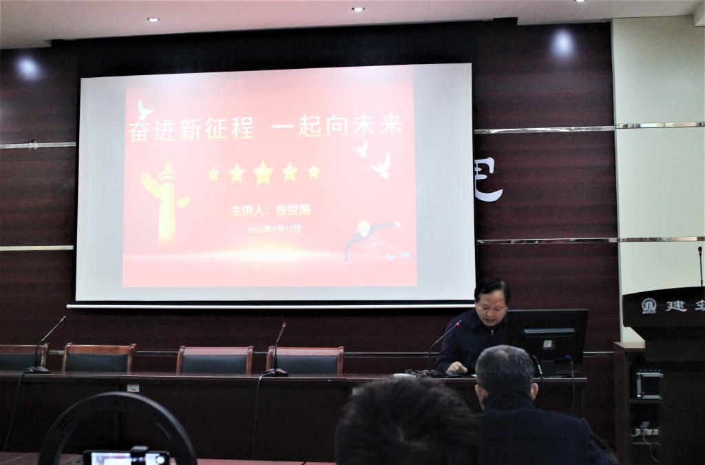 张世海带领师生从奥运三问、双奥之城的艰辛历程和冬奥夺金、女足夺冠的精彩瞬间,畅谈冰雪盛事,感悟冬奥精神。他指出,要深入理解冬奥盛会彰显出的中国文化自信和科技力量,深刻领会冬奥会传递的和平、团结、进步的奥林匹克精神和中国推动构建人类命运共同体的信心和决心,充分发扬冬奥拼搏精神,与榜样同行,进一步激发爱党爱国爱社会主义的情怀,努力争做担当民族复兴大任的时代新人。