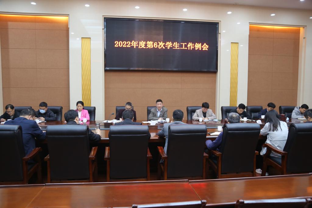 本网讯(特约记者/张启鑫)5月9日,学校召开2022年度第6次学生工作例会。学生处、团委、心理健康教育中心、保卫处、后勤服务中心、校医院等单位主要负责人,各教学院党委副书记参加会议。会议由党委学生工作部负责人主持。