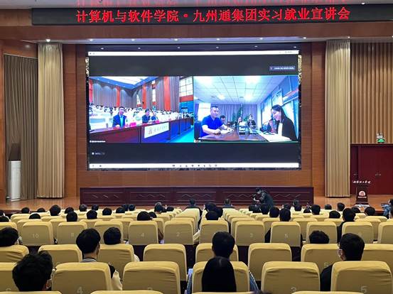 本网讯(特约记者/曾智 学生记者/闫丰)5月13日晚,计算机与软件学院在第三报告厅举办“书记校长访企拓岗促就业”专项行动九州通线上专场暨九州通集团实习就业线上宣讲会。