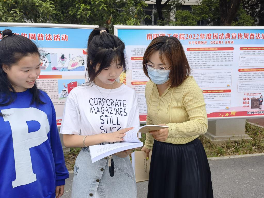 本网讯(特约记者/王冷)为切实做好《中华人民共和国民法典》学习宣传贯彻工作,增强广大师生法治意识,近日,学校制定发布《关于组织开展“美好生活·民法典相伴”主题普法宣传活动的通知》,编制《南阳理工学院2022年度民法典宣传周普法学习材料》,结合工作实际和师生需求,广泛科普《民法典》相关法律法规。