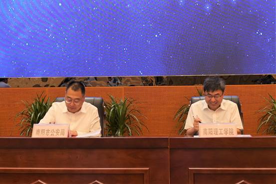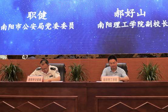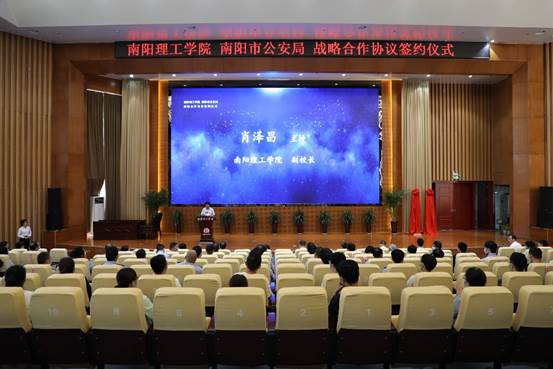 本网讯(特约记者/曾智)6月15日,我校与南阳市公安局战略合作协议签约仪式在第三报告厅顺利举行,南阳市副市长、公安局长鲁文明,市委宣传部副部长、网信办主任孙起照,市公安局党委委员职健,市委网信办副主任张晓东,校党委书记刘荣英,校长安士伟,副校长郝好山出席仪式,签约仪式由副校长肖泽昌主持。市委网信办、市公安局、校信息化建设与管理中心、校地合作与管理服务中心以及计算机与软件学院等相关同志参加活动。