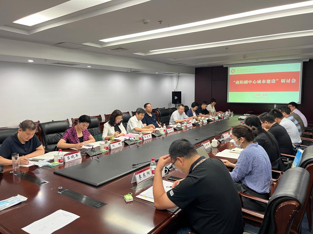 河南省政协人口资源环境委员会副主任谷建全,郑州大学副校长屈凌波,河南财经政法大学副校长朱金瑞,我校校长安士伟、副校长张爱红等出席研讨会。郑州大学、河南财经政法大学、郑州轻工业大学和我校郑州大学南阳研究院、范蠡商学院、建筑学院等相关单位负责人及“南阳副中心城市建设”项目组成员参加研讨会。