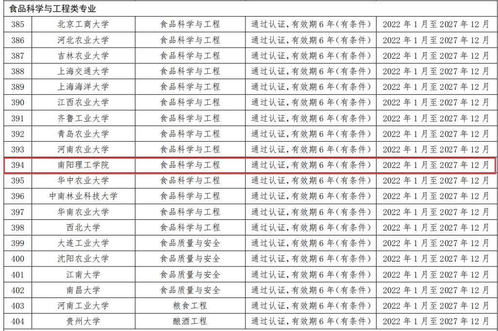 本网讯(记者/张燕 )近日,教育部教育质量评估中心、中国工程教育专业认证协会分别公布了2021年工程教育专业认证结果(工认协〔2022〕21号),我校食品科学与工程专业经过向协会提出认证申请、通过认证自评报告审核,完成专家组线上考查、结论审议等环节,最终顺利通过此次认证。