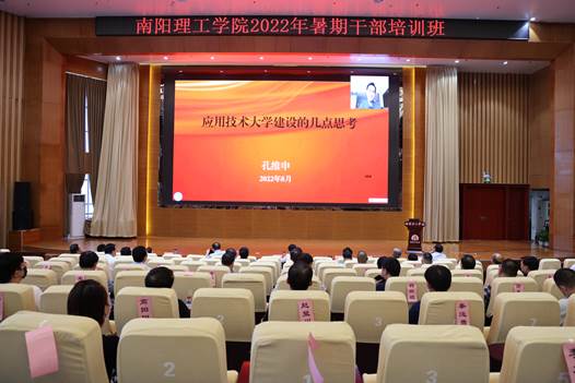 在集中培训阶段,副校长张爱红、河南省委教育工作领导小组秘书组秘书处副处长孔维申、天津理工大学科技处副处长李彭辉教授、我校法律顾问赵青东、马克思主义学院张闻晓副教授分别就硕士学位授予立项单位建设、应用技术大学建设、应用型本科高校科技成果转化、依法治校和马克思主义中国化的百年历程及宝贵经验五个方面作精彩报告。报告内容丰富,指导性强,既具有系统性,又具有针对性,突出学以致用和理论联系实际,对学校各级干部更新思想观念、提升能力素质、改进工作作风,具有重要推进作用。