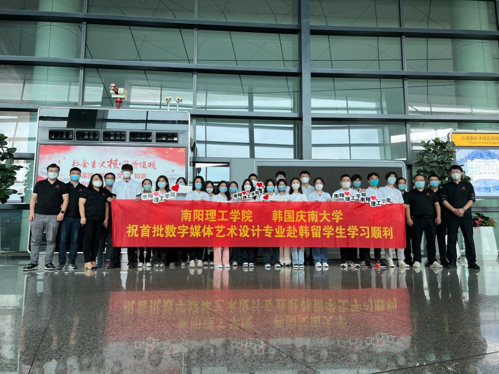 本网讯(特约记者/唐振海)8月30日上午,我校在新郑国际机场欢送首批数字媒体艺术设计专业中外合作办学项目毕业生赴韩国庆南大学学习。学校国际交流合作中心、数字媒体与艺术设计学院相关负责人、28名赴韩学生和部分家长参加欢送仪式。