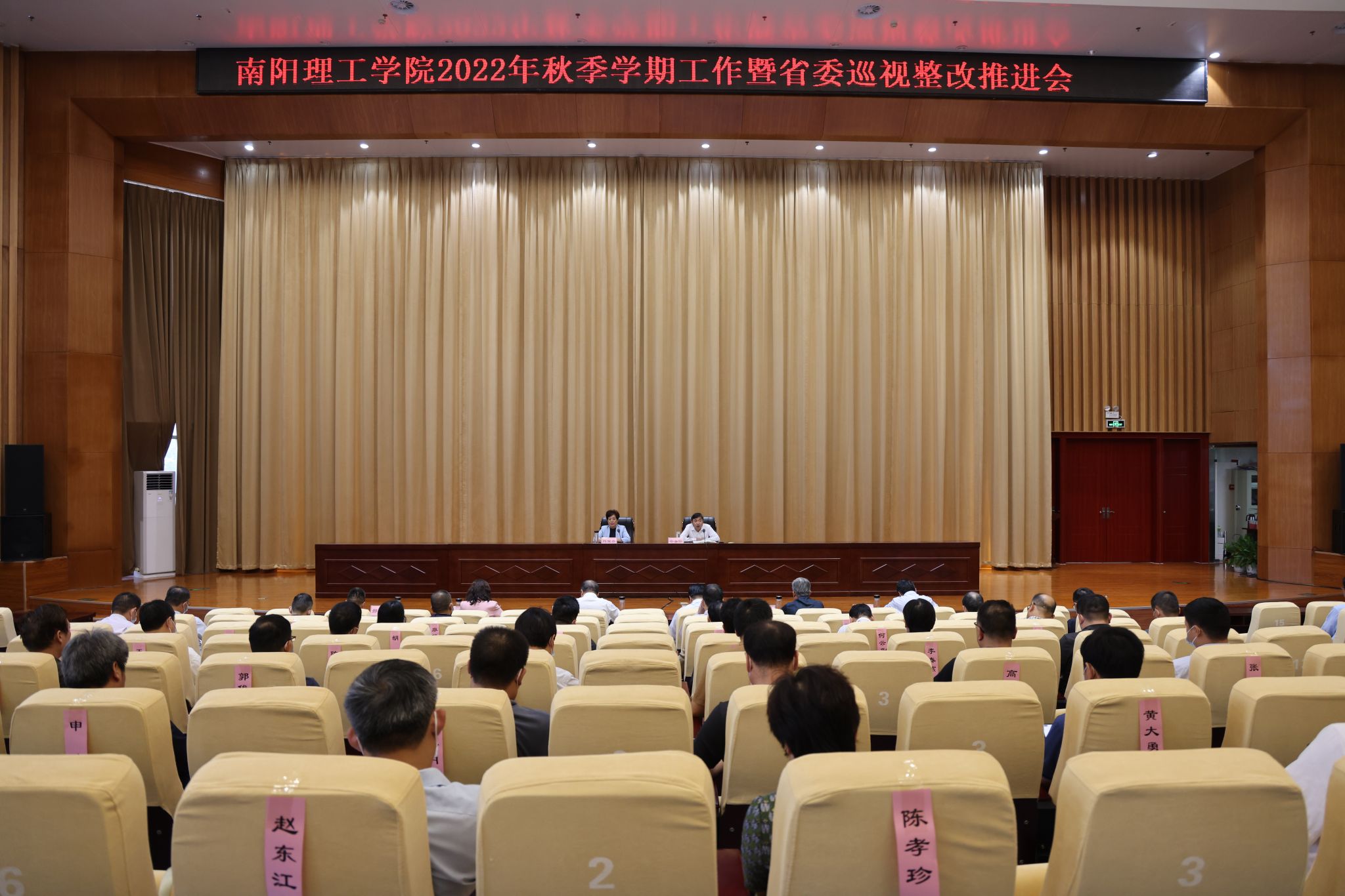 本网讯(记者/鲁静薇 学生记者/李冉冉)9月2日,我校在第三报告厅召开2022年秋季学期工作暨省委巡视整改推进会。会议对秋季学期工作进行安排部署,对巡视反馈意见整改工作进行再部署再推进。校党委书记刘荣英主持会议,全体校领导出席会议,全校中层干部参加会议。