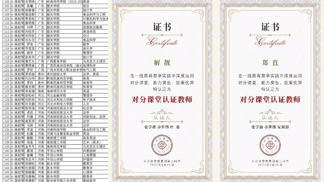 本网讯(特约记者/陈沛金)近日,我校对分课堂金牌教师发展师代表:外国语学院解靓和数字媒体与艺术设计学院郑直两名老师在教师节当日获得第一批“对分课堂认证教师”资格,该资格由对分课堂教育创新共同体设立的评审委员会认定。