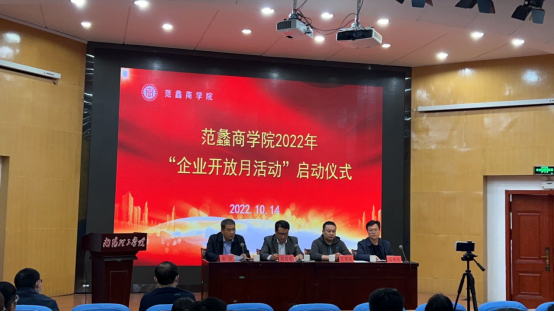 本网讯(通讯员/崔婷)10月14日下午,南阳企业家学院与范蠡商学院联合举办2022年“企业开放月活动”启动仪式暨2023届毕业生就业教育工作推进大会。副校长葛晨光、校招生就业处相关负责人、河南牧原物流有限公司招聘经理师文龙、范蠡商学院领导班子、300余名毕业班师生参加会议,会议由范蠡商学院主要负责同志主持。
