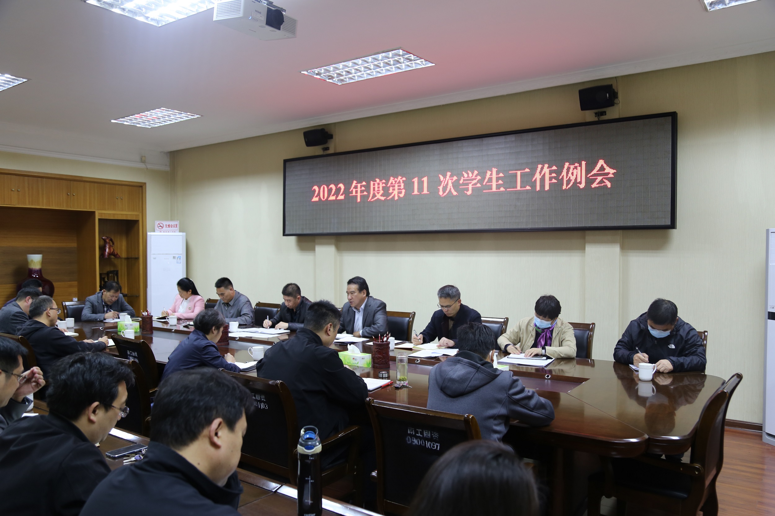 本网讯(特约记者/张启鑫)10月17日,副校长葛晨光主持召开我校2022年度第11次学生工作例会。学生处、团委、心理健康教育中心、保卫处、后勤服务中心、校医院、依法治校办公室等部门主要负责人、各教学院党委副书记参加会议。