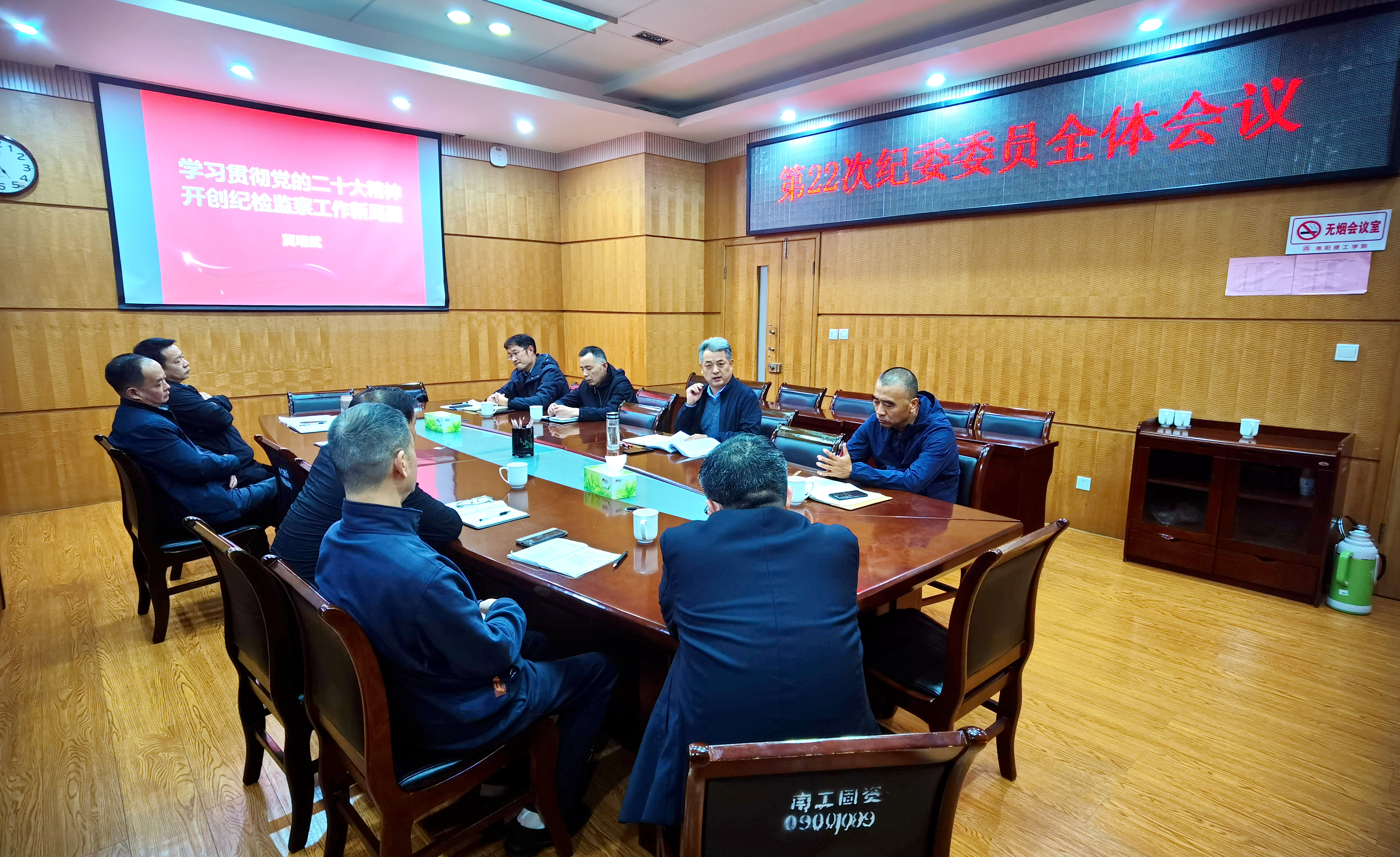 会上,校党内法规与廉政建设研究中心执行主任冀明武博士以《学习贯彻党的二十大精神 开创纪检监察工作新局面》为题,全面领学党的二十大报告主要内容和重要意义,并结合我校纪检监察工作实际,对报告中关于坚定不移全面从严治党,深入推进新时代党的建设新的伟大工程等内容,进行重点学习交流。校纪委委员、各室主任围绕如何强化监督职责、突出工作重点、创新监督方式,就进一步加强纪检监察工作进行研讨。