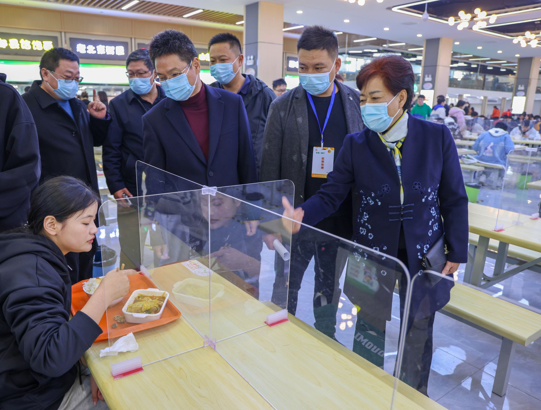 本网讯 11月15日,校党委书记刘荣英、副校长郝好山,党政办公室、党委宣传部、后勤服务中心主要负责同志深入学苑餐厅查看供餐保障情况并与学生共进午餐。