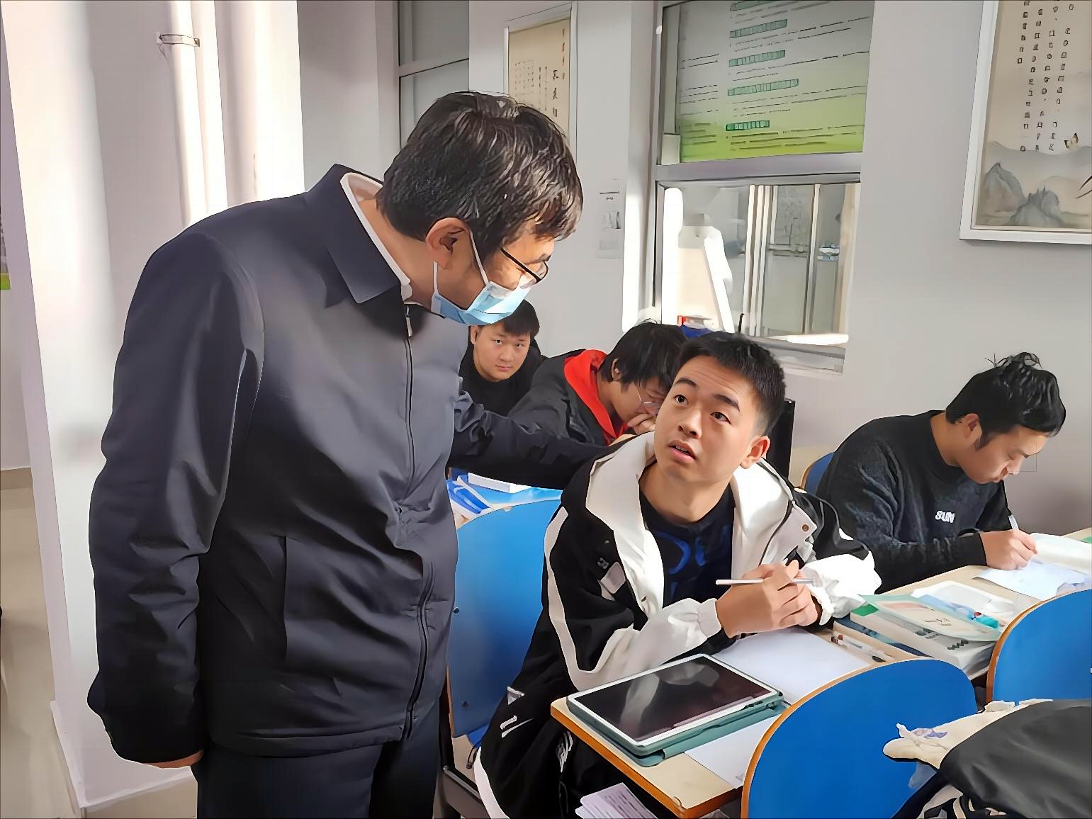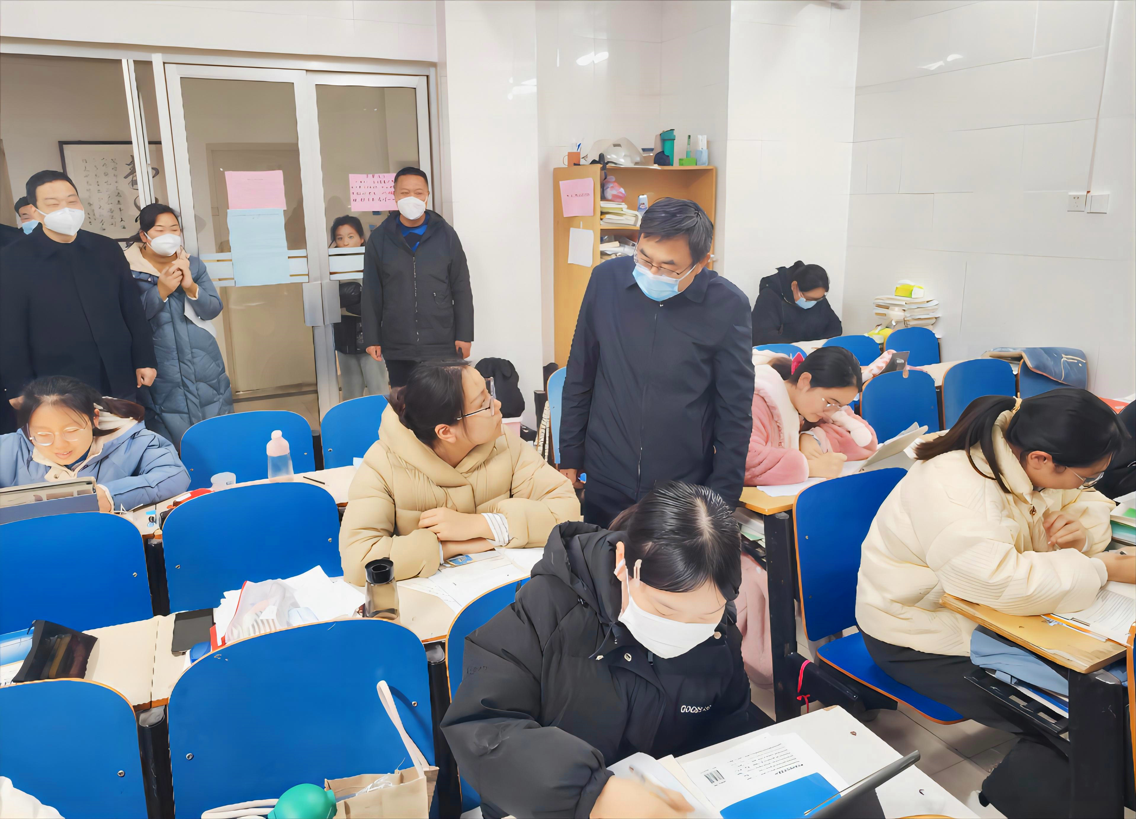 本网讯(记者/段亚楠)12月7日上午,校长安士伟,校党委副书记、工会主席董豪,副校长蔡广宇、高芳放带领党政办公室、学生处、后勤服务中心等单位负责同志深入教学院、学生宿舍、后勤服务中心等地亲切看望住校师生。