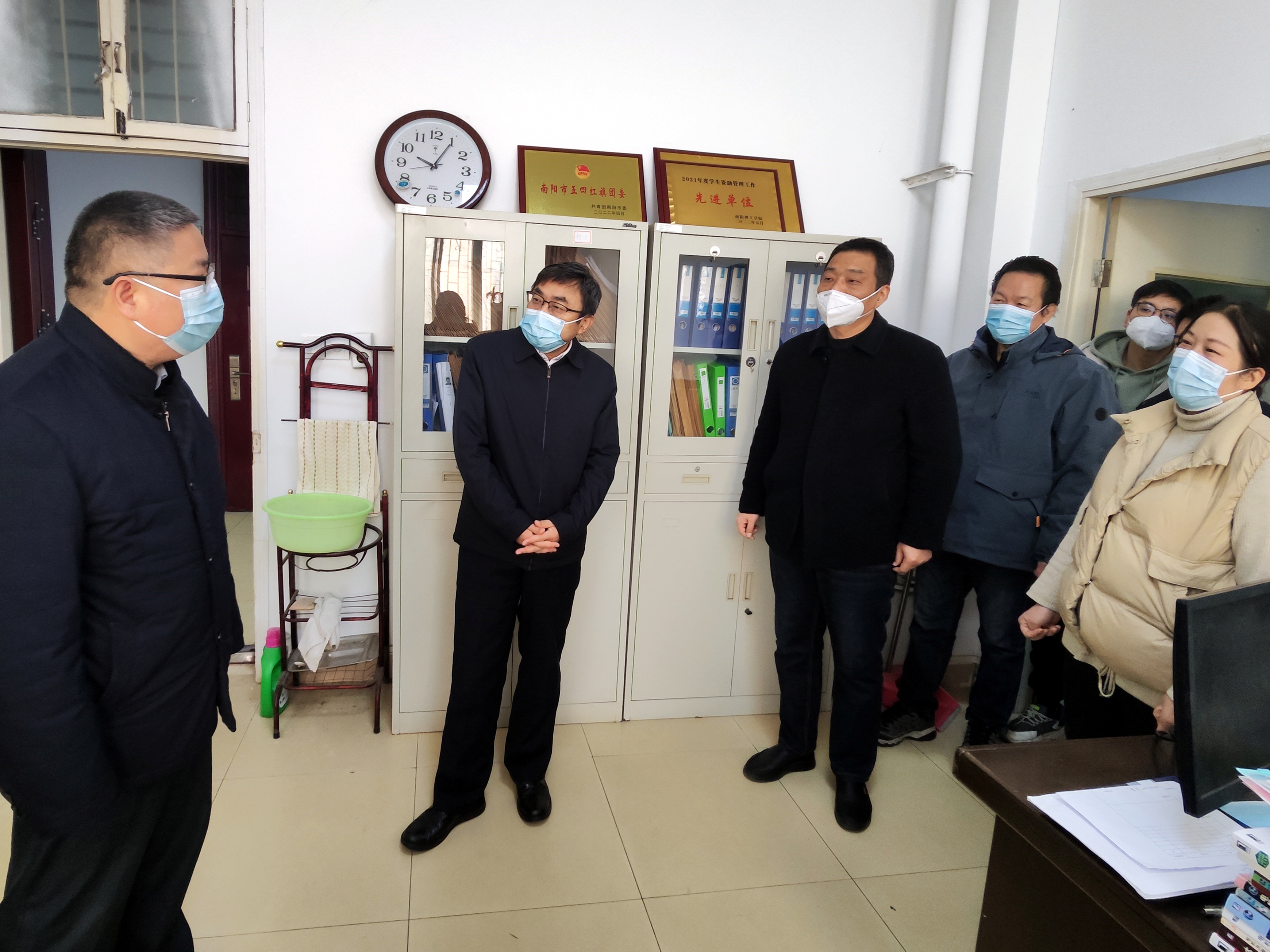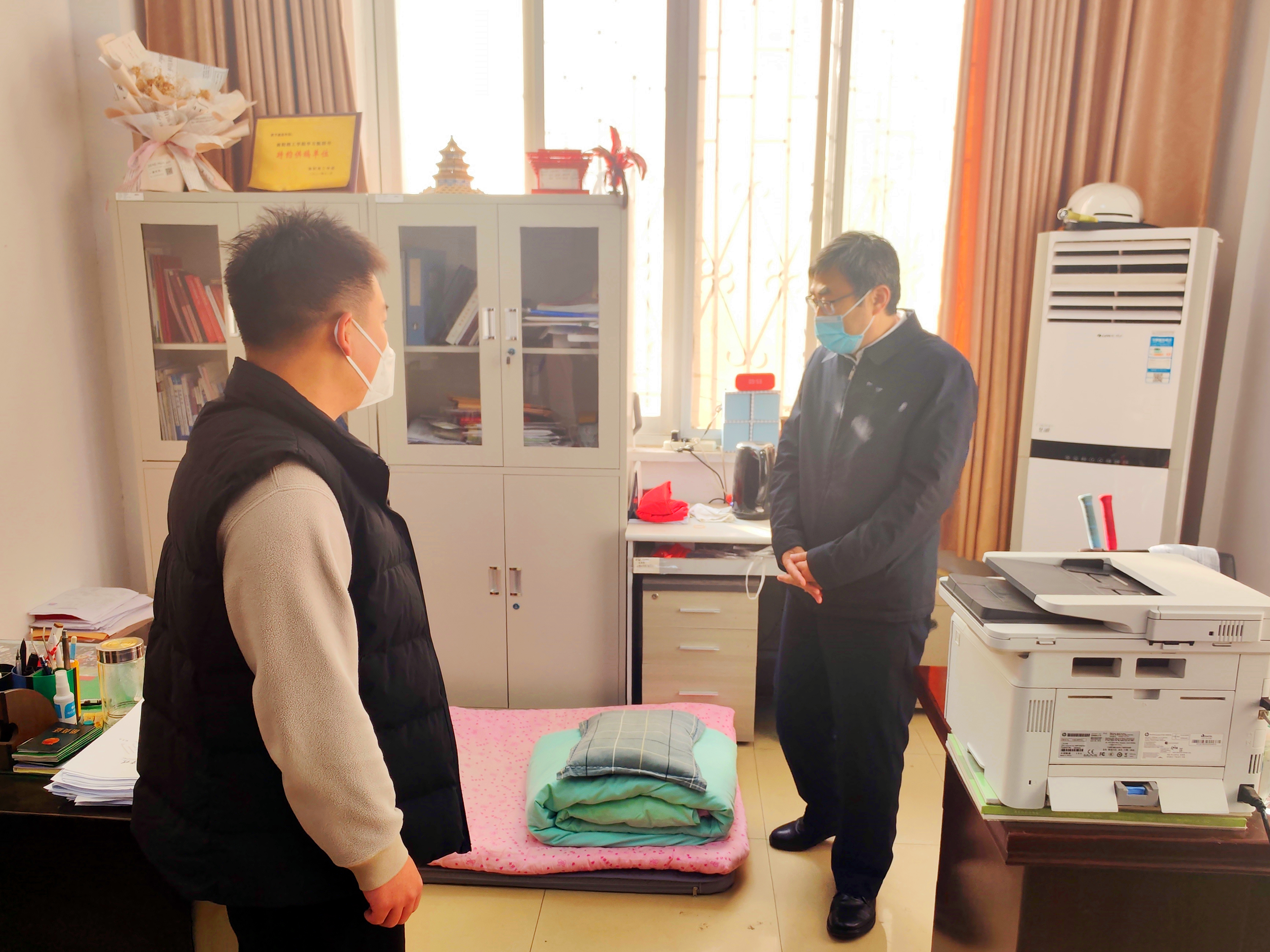 在智能制造学院、建筑学院以及后勤服务中心,校领导查看了住校教职工的值班和住宿条件并详细询问工作开展情况,了解落实校园闭环管理和关心关爱住校学生的具体举措,叮嘱大家在照顾好自己的同时密切关注住校学生的学习生活及身体情况,及时给与关心和帮助。希望大家继续积极配合校园闭环管理期间学校各项工作,共同努力筑牢校园安全防线,守护师生安全健康。