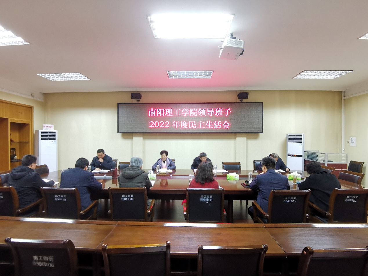 本网讯(特约记者/陈鹏)2月13日下午,南阳理工学院领导班子在第一会议室召开2022年度民主生活会,校党委书记刘荣英主持会议并作总结讲话。全体党员校领导参加会议,非党员校领导郝好山,党政办公室、纪委监察专员办公室主要负责人列席会议。