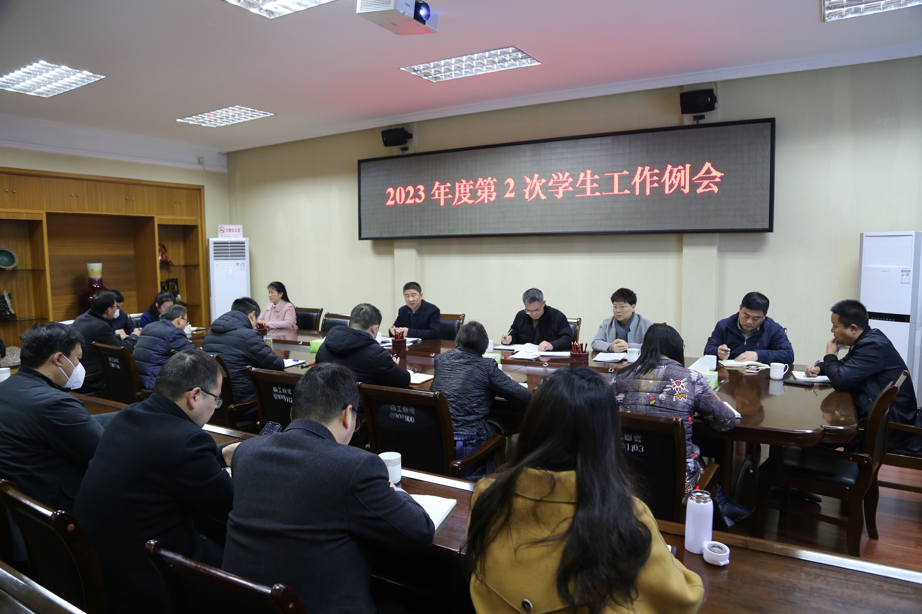 本网讯(特约记者/张启鑫)2月28日,我校召开2023年度第2次学生工作例会。学生处、团委、心理健康教育中心、保卫处、后勤服务中心、依法治校办公室等部门主要负责人,各教学院党委副书记参加会议。会议由党委学生工作部负责人主持。