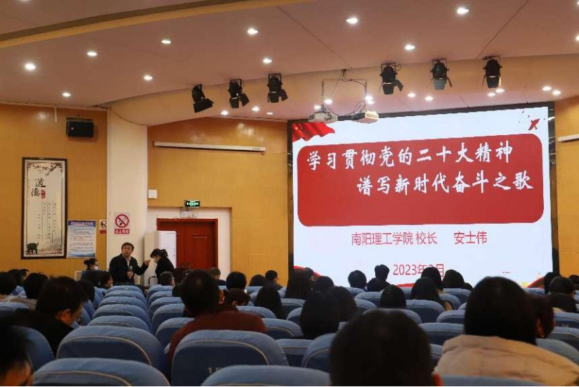 安士伟围绕党的二十大报告展开深入讲解,同时结合我校2023年发展目标和规划,要求南工人要以永不停歇的奋斗精神和永无止境的创新精神助力推进中国式现代化教育。他表示,希望全校师生一要爱党爱国,赓续红色血脉。把自己的理想同祖国的前途、把自己人生同民族的命运紧密联系在一起,扎根人民,奉献国家。二要勤奋笃学,锤炼担当民族复兴重任的过硬本领。注重培养创新思考能力,加强对跨学科知识的涉猎,始终保持对未知事物的好奇心,形成学习的内驱力,打好终身学习、自我提升的基础。三要知行合一,在力行实践中做实干家。在经历锻炼、磨练与淬炼的过程中,真正做到脚踏实地、苦干实干,成长为有理论深度、有实践厚度的南工人。不负时代、不负韶华、不负党和人民的殷切期望,在推进中华民族伟大复兴的历史进程中贡献南工力量。