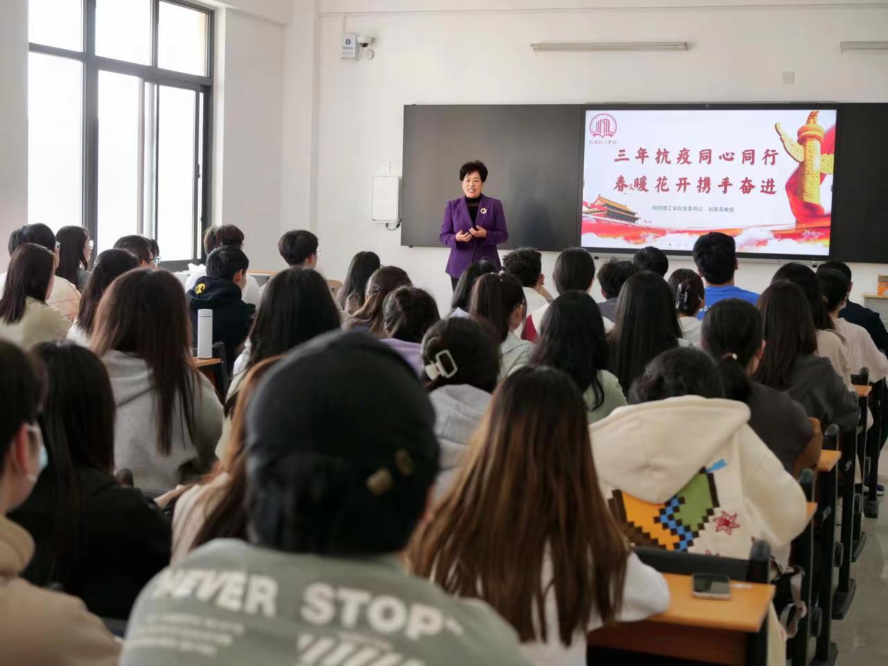 本网讯(记者/王小婉)3月9日下午,校党委书记刘荣英以“三年抗疫同心同行 春暖花开携手奋进”为题,为传媒学院师生讲授2023年春季开学思政第一课。