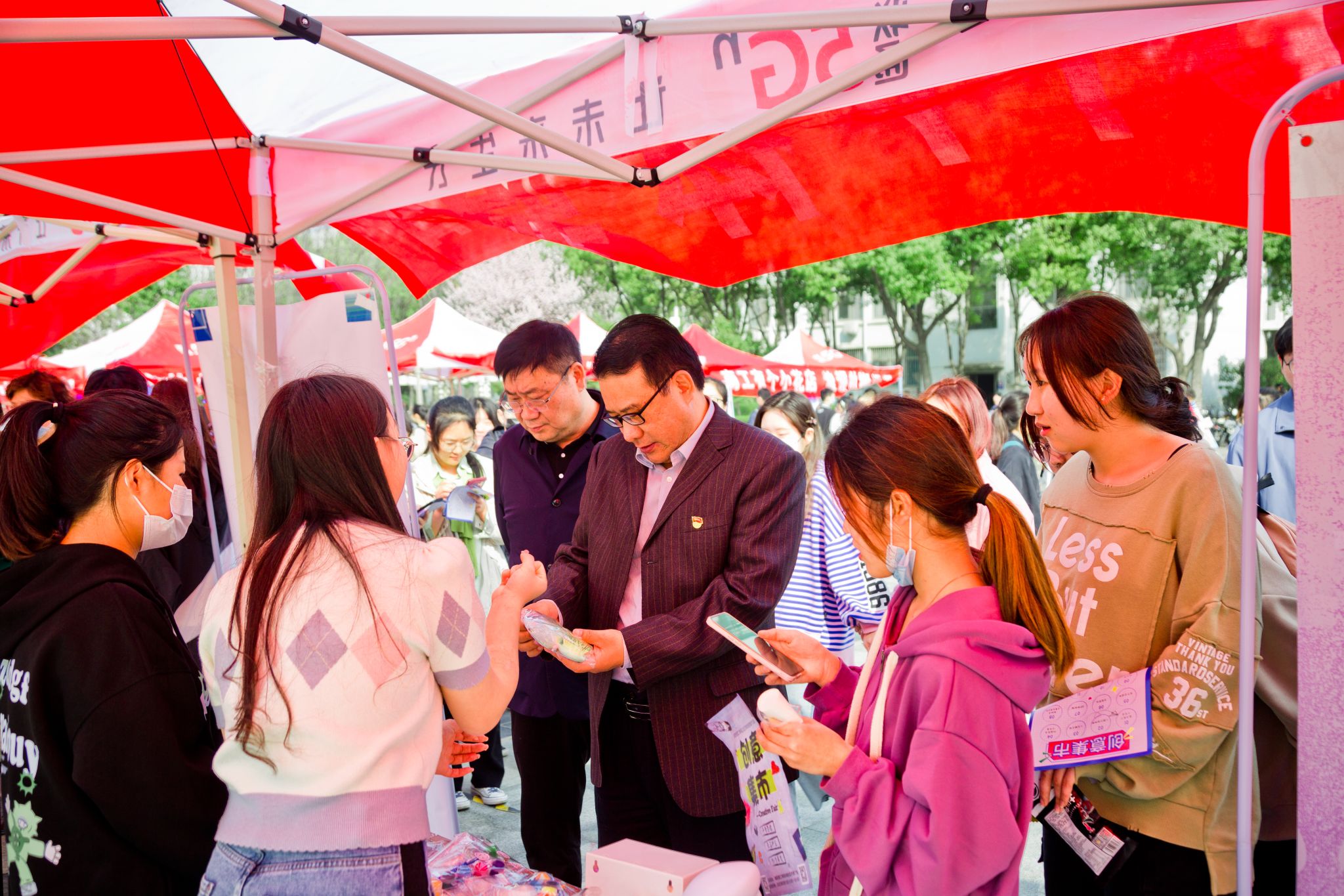 本网讯(记者/杨丹丹)3月10日,我校2023年度创意集市在齐贤广场举行,副校长葛晨光、招生就业处负责人出席活动现场。