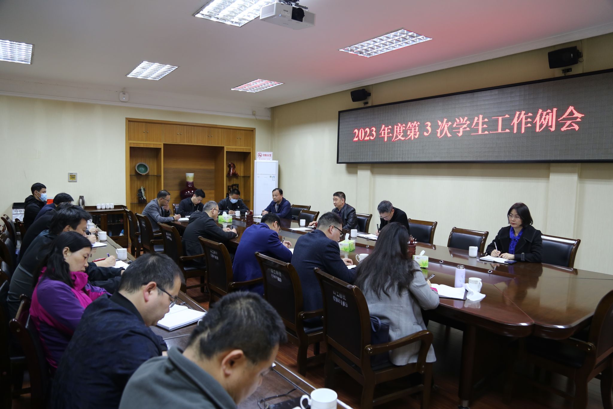 本网讯(特约记者/张启鑫)3月14日,我校召开2023年度第3次学生工作例会。学生处、团委、心理健康教育中心、保卫处、后勤服务中心、校医院、依法治校办公室等部门主要负责人,各教学院党委副书记参加会议。会议由党委学生工作部负责人主持。