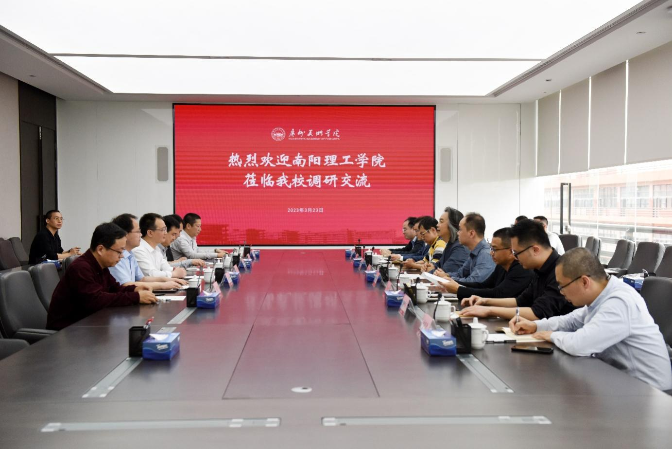 3月23日下午,考察组一行来到广州美术学院。广州美术学院副校长蔡拥华介绍学校基本情况、办学历史、专业特色、“一校三区”办学格局,重点介绍智慧迎新、网上办事大厅、智慧校门出入管理系统。