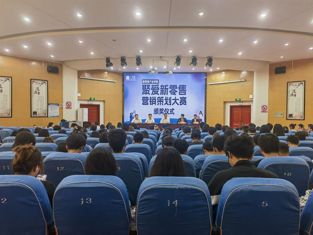 范蠡商学院负责人宣读《关于表彰“聚爱新零售”营销策划大赛获奖同学的决定》。学校和企业领导共同为获得一、二、三等奖、优秀奖、创新创意奖的20支队伍代表颁奖。