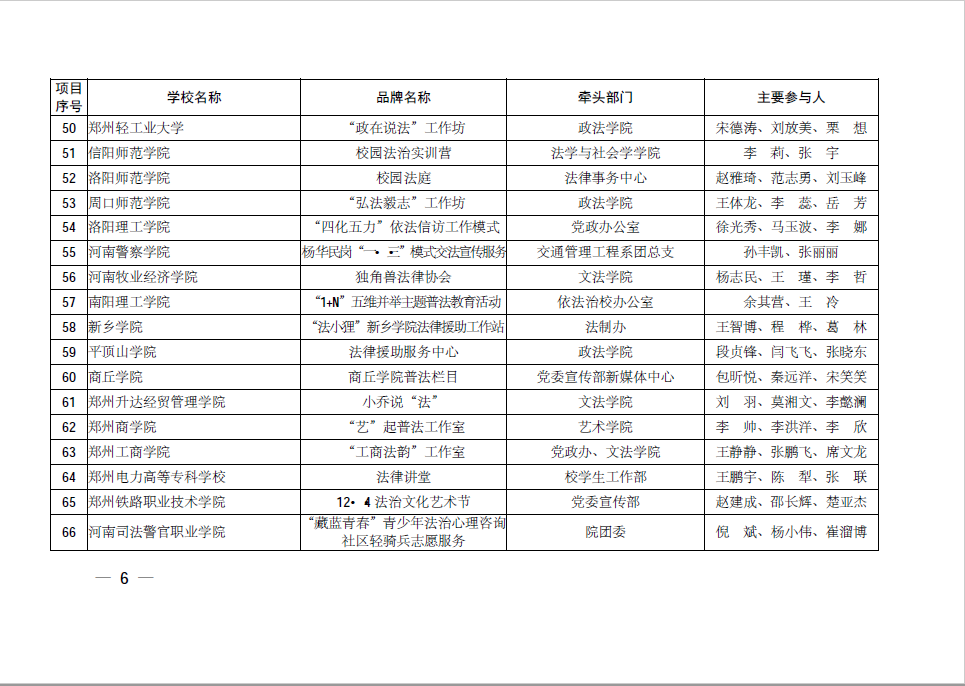 本网讯(特约记者/王冷)6月1日,河南省教育厅公布全省校园法治文化品牌遴选活动评审结果,我校“1+N”五维并举主题普法教育活动荣获全省校园法治文化品牌项目。